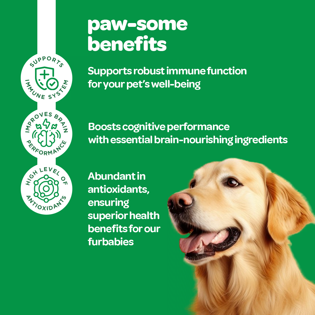 formulated with ingredients known for their cognitive benefits, including omega-3 fatty acids and brain-boosting nutrients, this dog treat helps support optimal brain function and mental agility in your pet.