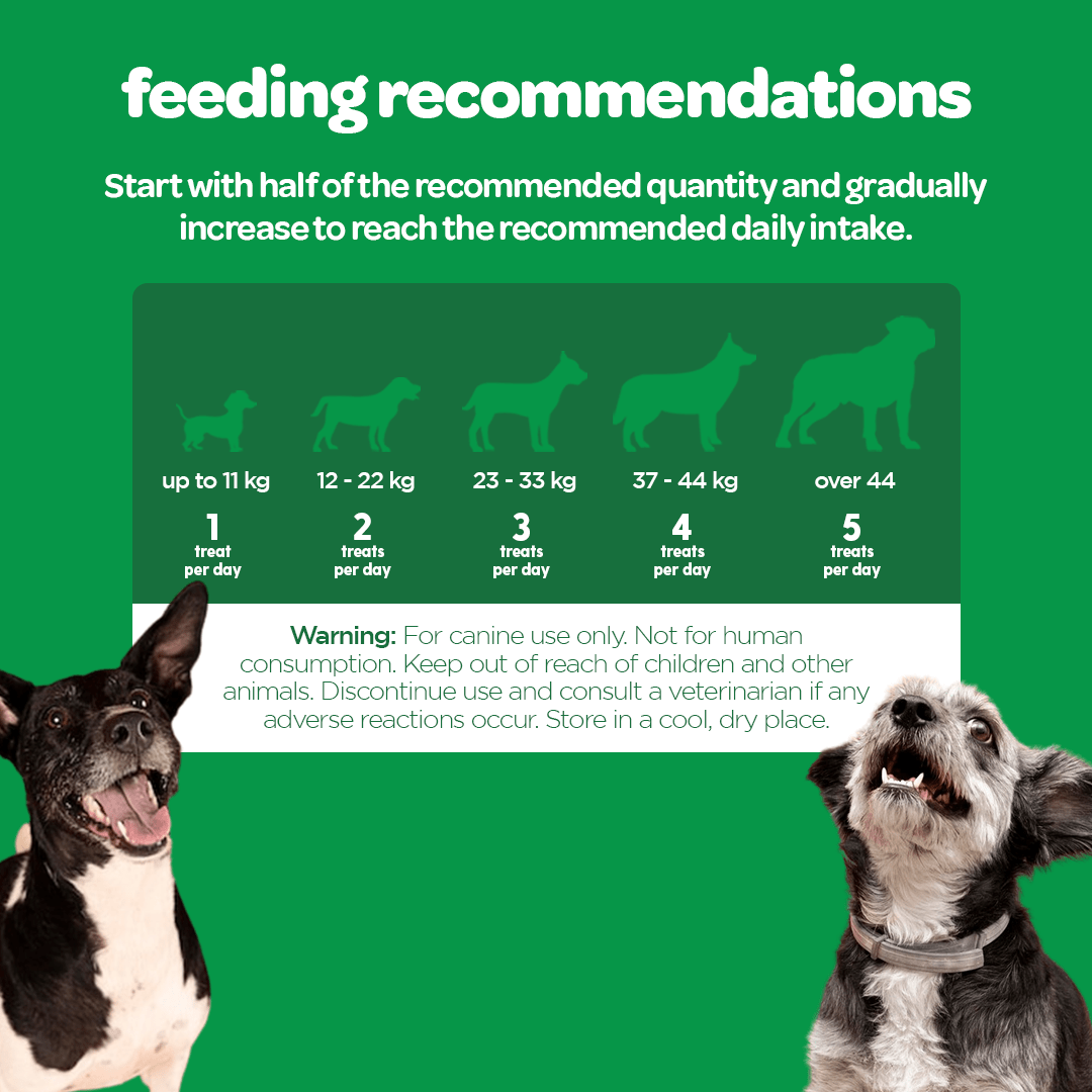 🌱 Curcuma (Turmeric) & Prebiotics: provides anti-inflammatory properties, suitable for dog joint supplement.