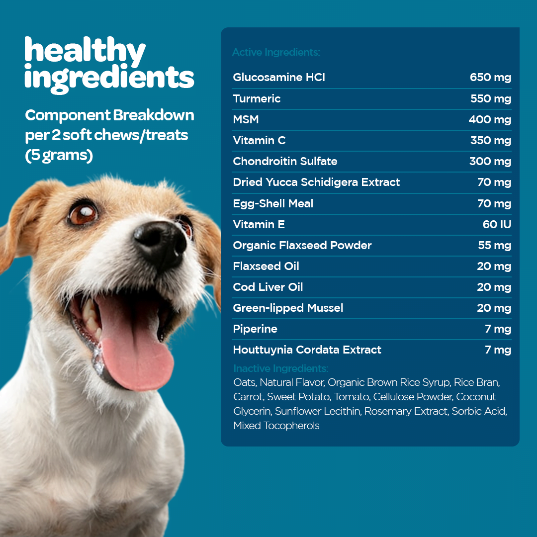 ๐พ Enhanced Flexibility and Mobility: Enriched with premium ingredients like glucosamine, chondroitin, and MSM, our soft chews promote flexibility and ease of movement for your pet, ensuring they can play, run, or stroll with joy.